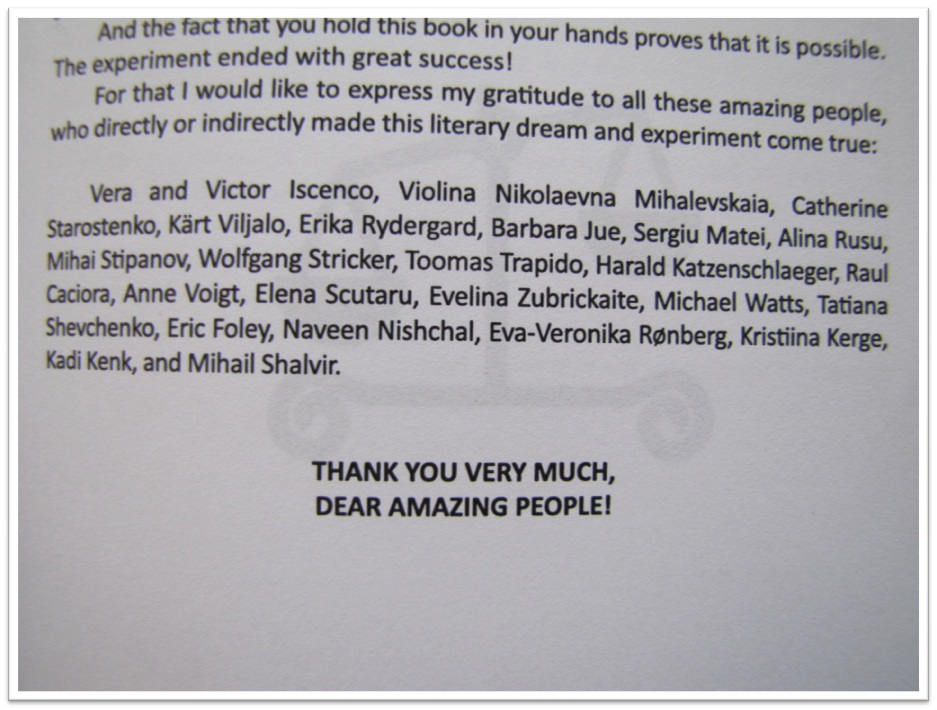 Эта часть истории написания романа была упомянута в информационном бюллетене LDIW №44 под названием «Опубликована книга, вдохновленная героями Let’s Do It! World». Спасибо Кади Кенк за ее написание и распространение!